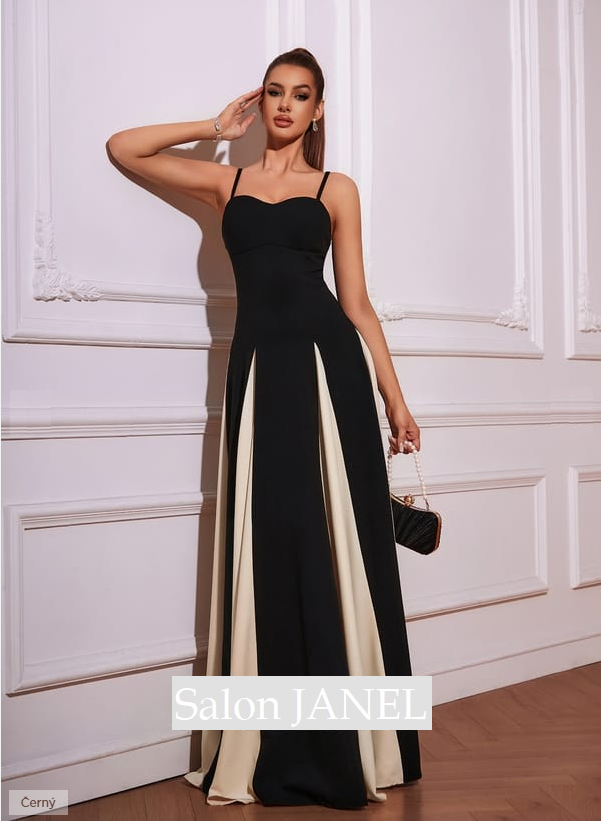 ČERNO BÍLÉ STREČOVÉ ŠATY SE ŠIROKOU SUKNÍ A RAMÍNKY
