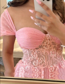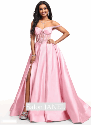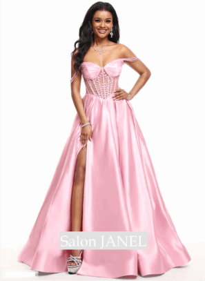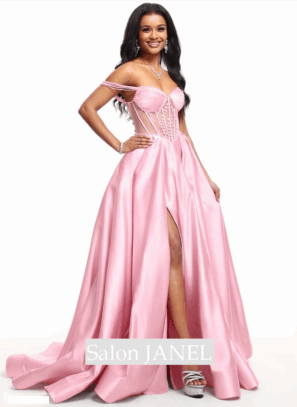 PŘEKRÁSNÉ RŮŽOVÉ SATÉNOVÉ ŠATY S KORZETOVÝM ŽIVŮTKEM A ŠNĚROVÁNÍM NA ZÁDECH