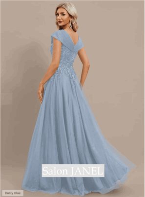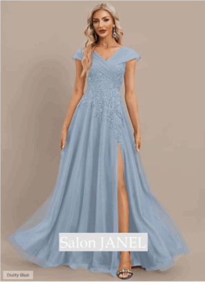 SVĚTLE MODRÉ DUSTY BLUE TYLOVÉ DLOUHÉ ŠATY S KRAJKOVÝM ŽIVŮTKEM