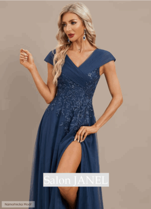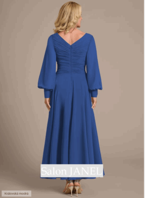 KRÁLOVSKY MODRÉ ŠATY S DLOUHÝM RIKÁVEM A KŘÍŽENÝM VÝSTŘIHEM DO V