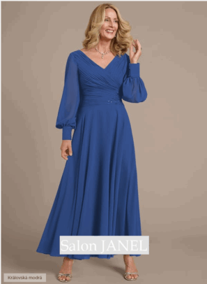 LUXUSNÍ SPOLEČENSKÉ ŠATY S PRODLOUŽENOU SUKNÍ A DLOUHÝM RUKÁVEM