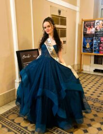 DUSTY BLUE NÁDHERNÉ TŘPYTIVÉ MATURITNÍ ŠATY S ÚŽASNÝM KORZETOVÝM ŽIVŮTKEM A TYLOVOU SUKNÍ