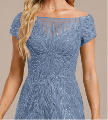 PŘEKRÁSNÉ TYLOVÉ VYŠÍVANÉ ŠATY S LODIČKOVÝM VÝSTŘIHEM A KRÁTKÝMI RUKÁVKY