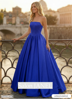 KRÁLOVSKY MODRÉ ŠATY S DLOUHÝM RUKÁVEM A KŘÍŽENÝM VÝSTŘIHEM DO V