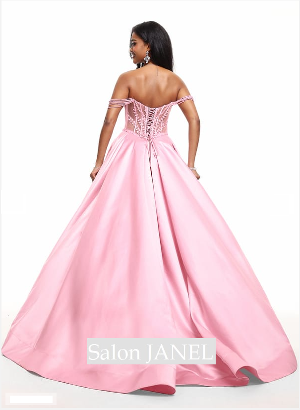 PŘEKRÁSNÉ RŮŽOVÉ SATÉNOVÉ ŠATY S KORZETOVÝM ŽIVŮTKEM A ŠNĚROVÁNÍM NA ZÁDECH