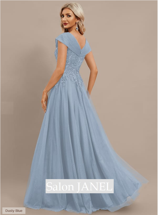 SVĚTLE MODRÉ DUSTY BLUE TYLOVÉ DLOUHÉ ŠATY S KRAJKOVÝM ŽIVŮTKEM