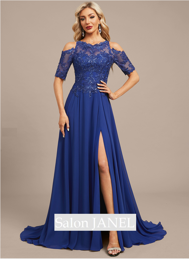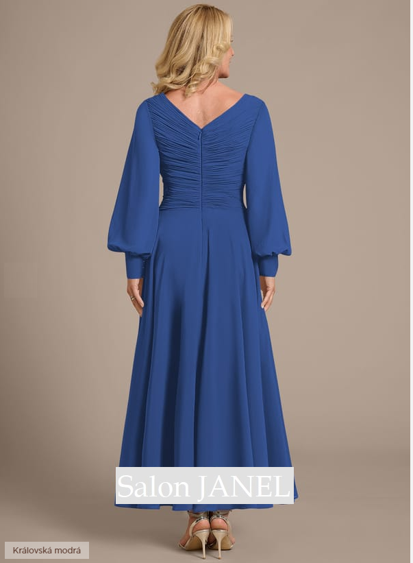 LUXUSNÍ SPOLEČENSKÉ ŠATY S PRODLOUŽENOU SUKNÍ A DLOUHÝM RUKÁVEM