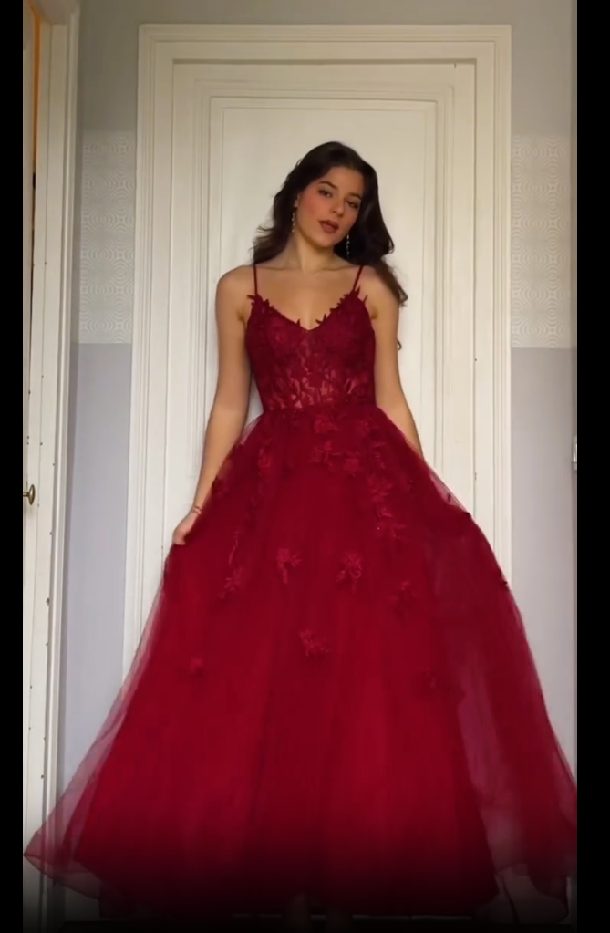 ÚŽASNÉ VÍNOVÉ PLESOVÉ ŠATY S VOLÁNKOVOU SUKNÍ, VYKROJENÝM ŽIVŮTKEM A RAMÍNKY NA VÁZÁNÍ