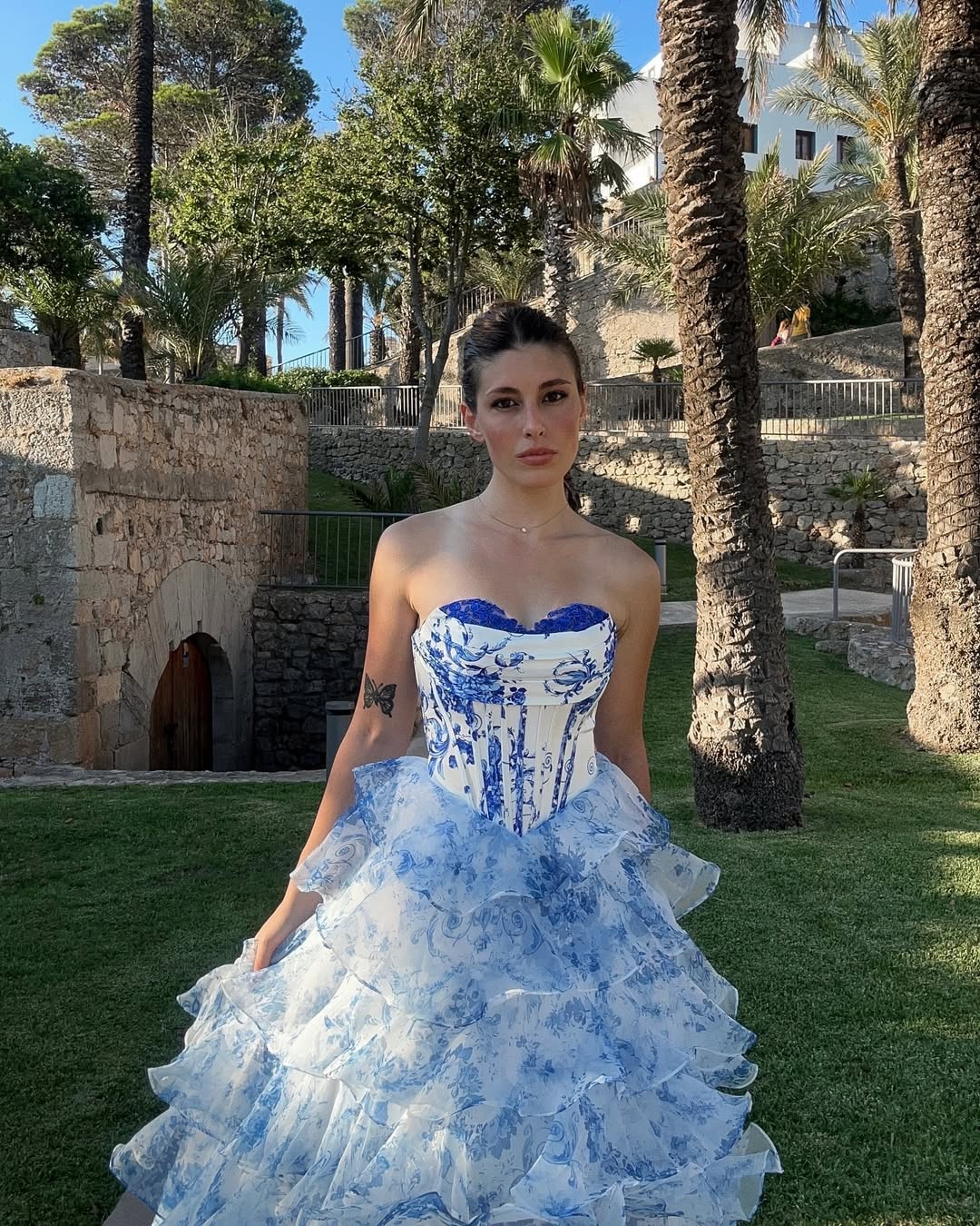 PŘEKRÁSNÉ ŠATY S VYŠÍVANÝM ŽIVŮTKEM, VOLÁNOVOU VRSTVENOU SUKNÍ A ŠNĚROVÁNÍM NA ZÁDECH