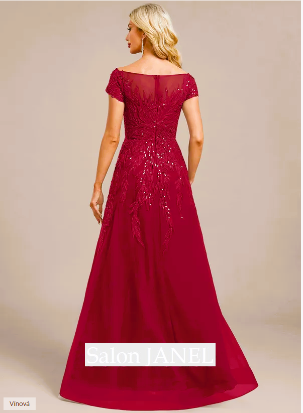 PŘEKRÁSNÉ TYLOVÉ VYŠÍVANÉ ŠATY S LODIČKOVÝM VÝSTŘIHEM A KRÁTKÝMI RUKÁVKY