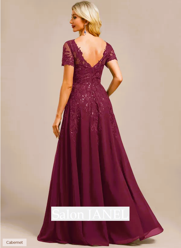 ÚŽASNÉ ŠATY V CABERNET VÍNOVÉ BARVĚ S KRÁTKÝM RUKÁVKEM A VÝSTŘIHEM DO V
