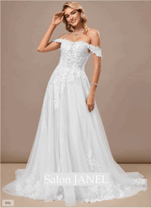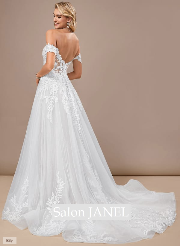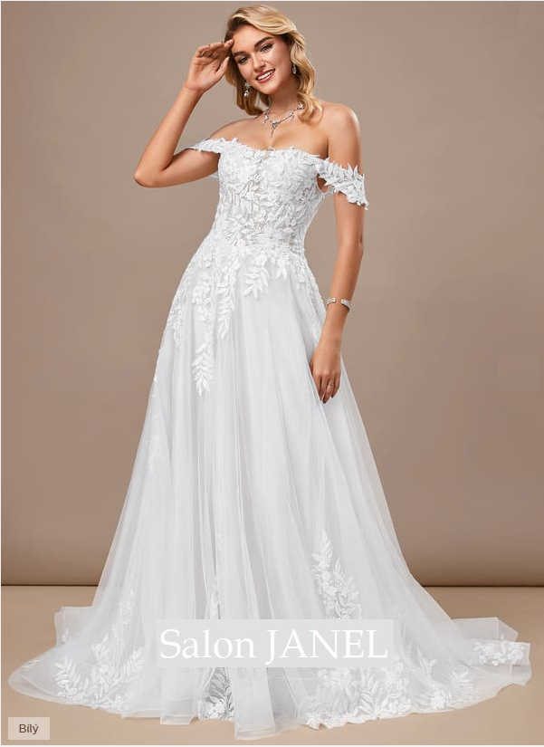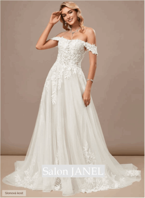 SVATEBNÍ ŠATY-SVATEBNÍ ŠATY SE SPADLÝMI RAMENY-BÍLÉ ŠATY