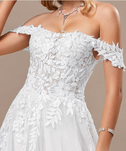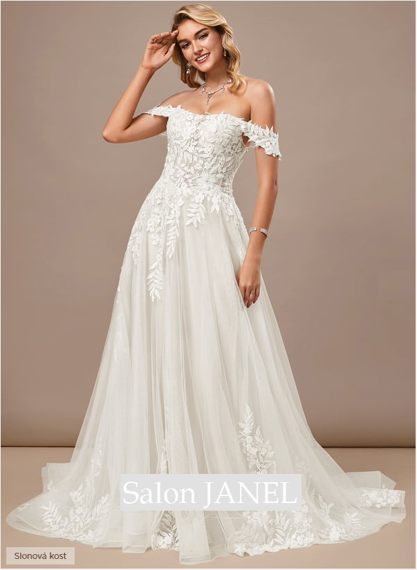 SVATEBNÍ ŠATY-SVATEBNÍ ŠATY NA RAMÍNKA-IVORY ŠATY S KVĚTINOVOU KRAJKOU