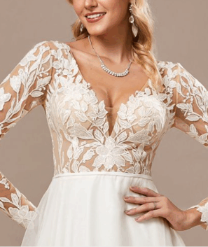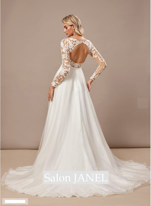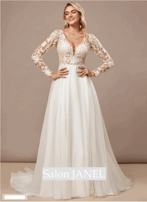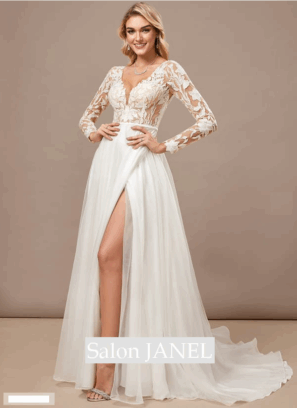 SVATEBNÍ ŠATY-SVATEBNÍ ŠATY S DLOUHÝMI RUKÁVY-SVATEBNÍ ŠATY S VÝSTŘIHEM DO V